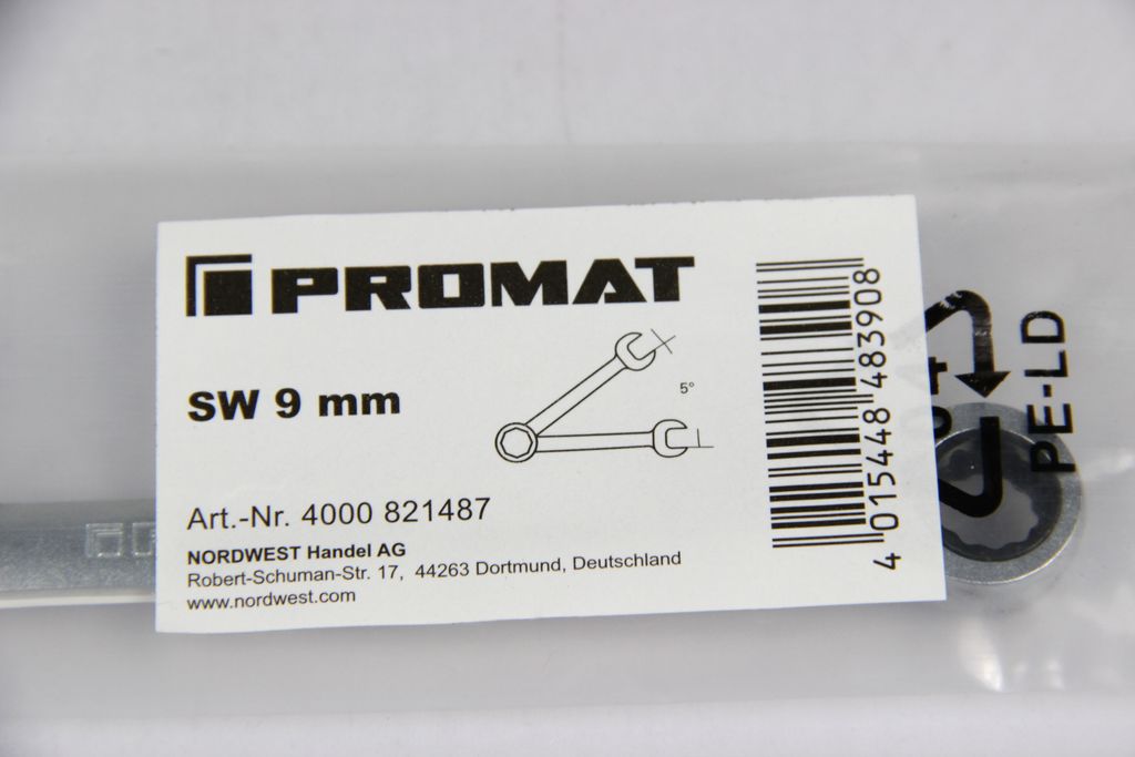 Promat SW 9 mm ring ratchet wrench straight length 143 mm