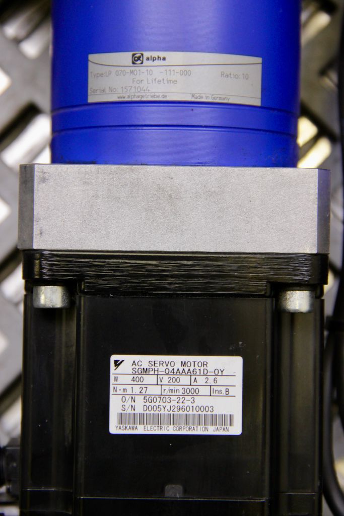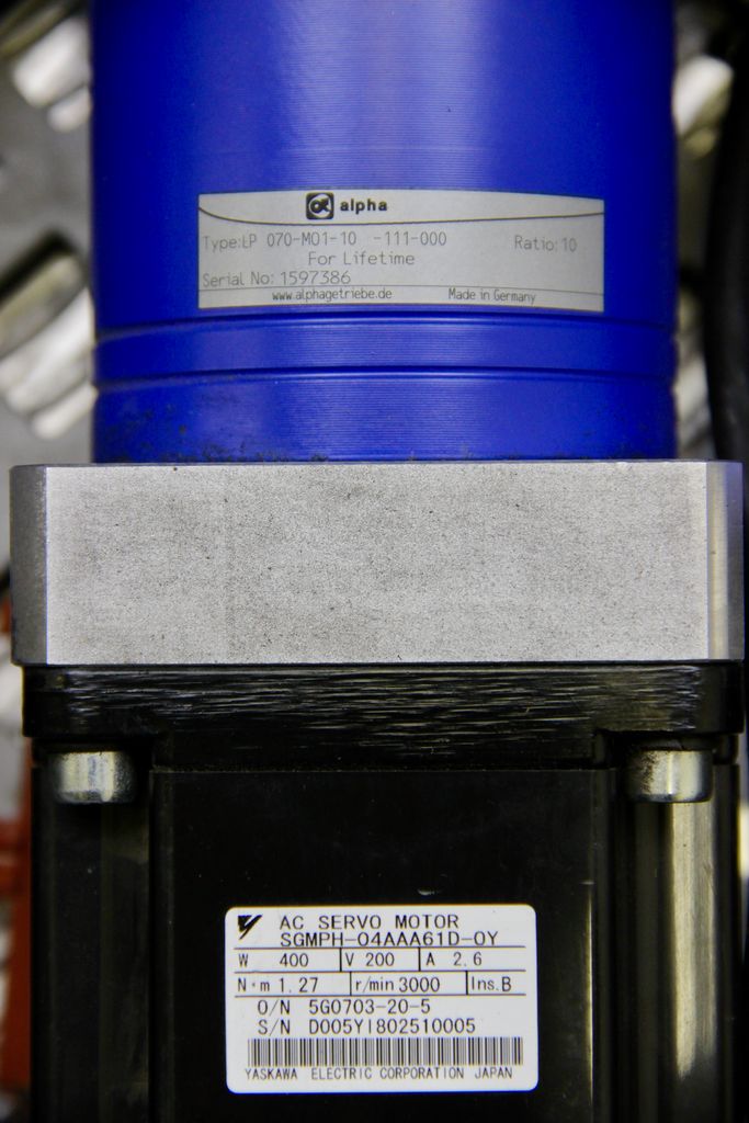 This motor is equipped with an alpha LP 070-M01-10-111-000 planetary gearbox. This gearbox reduces the speed and increases the torque, making the motor suitable for applications with higher loads and precise positioning. The combination of Yaskawa servo motor and alpha gearbox offers a robust, durable, and highly precise drive solution.