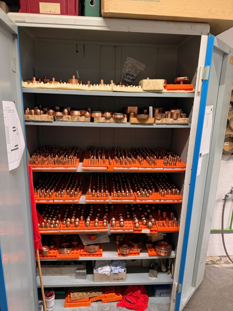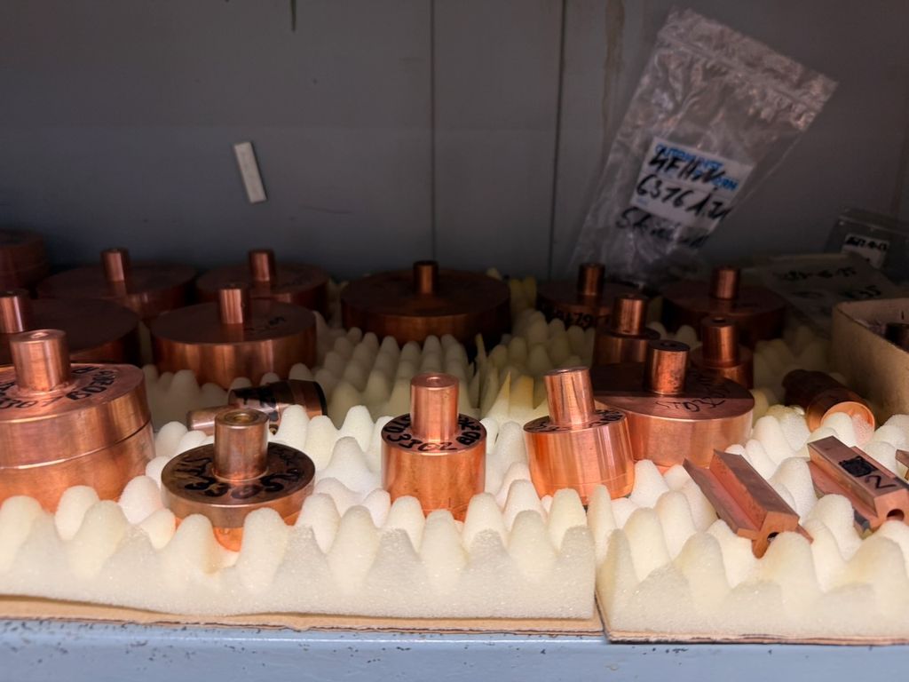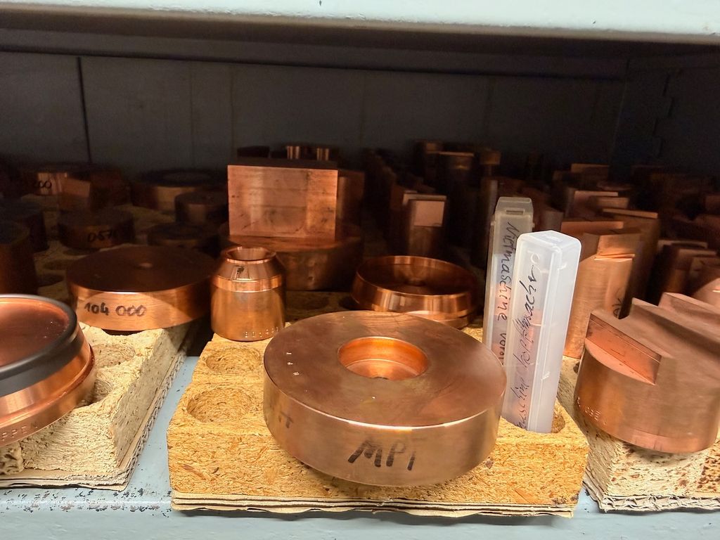 sehr umfangreicher Bestand an Kupfer-Elektroden und Elektrodenrohlingen aus dem Bereich Senkerodieren / Werkzeug- und Formenbau.