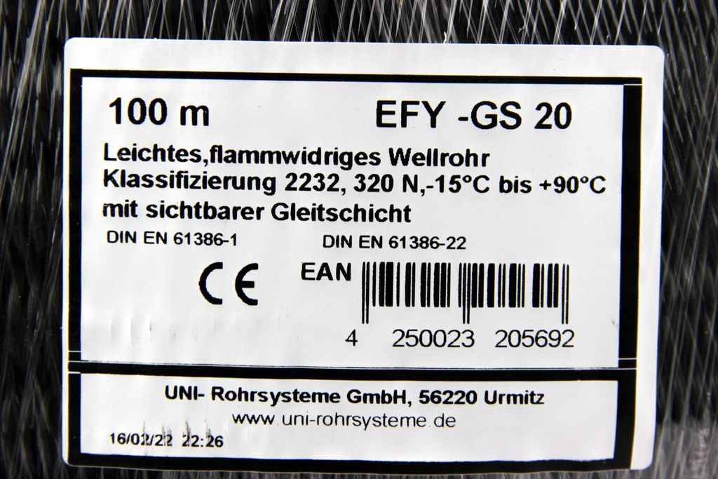 Das UNI-Rohrsystem EFY-GS 20 ist ein leichtes, schwarzes Wellrohr, das speziell für anspruchsvolle Elektroinstallationen entwickelt wurde.