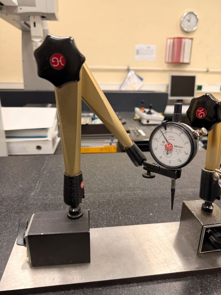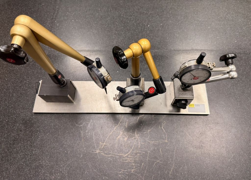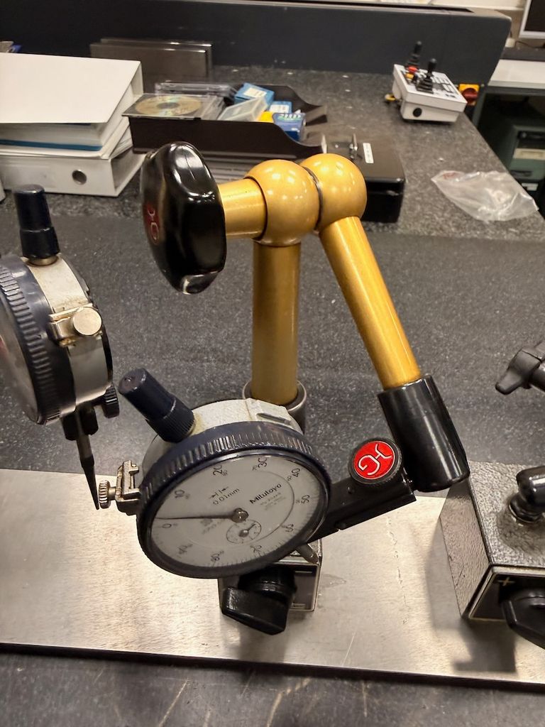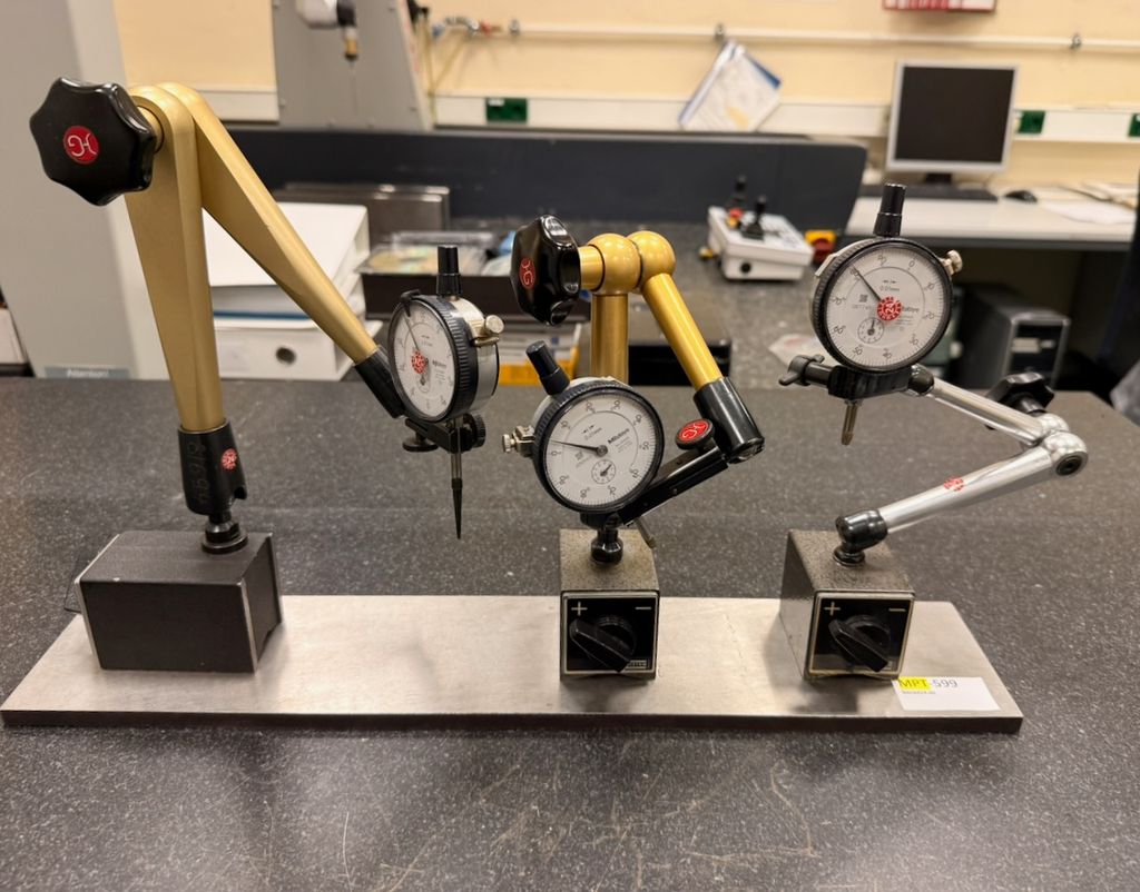 (3x) Hydraulische Messstative mit Messuhren
