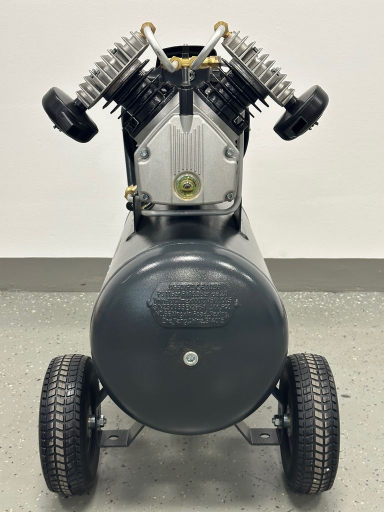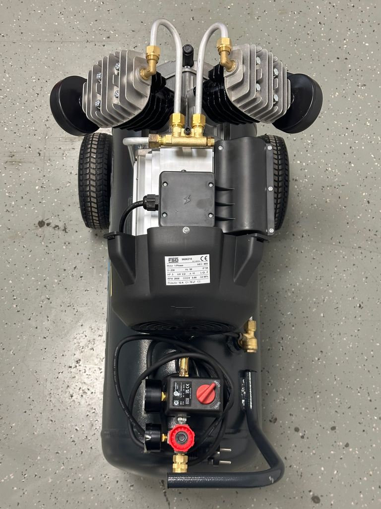 Mit seinem ölgeschmierten 2‑Zylinder‑Aggregat in V‑Form liefert er eine hohe Luftleistung bei gleichzeitig zuverlässigem Dauerbetrieb.