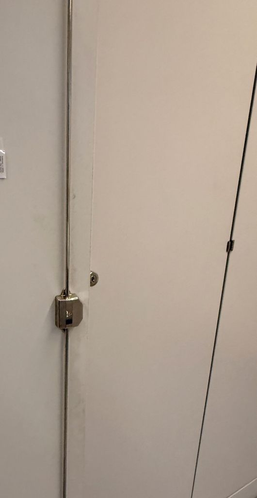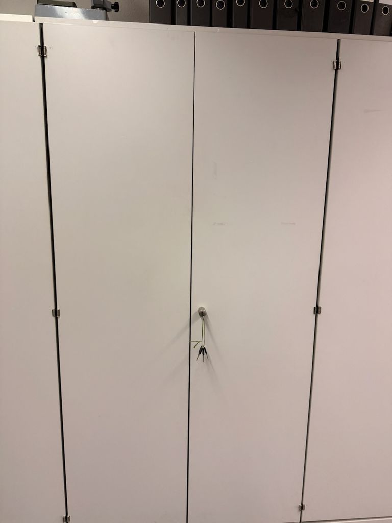Der Schrank ist abschließbar, ein Schlüssel ist vorhanden.