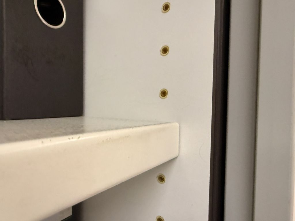 Im Inneren befinden sich verstellbare Fachböden aus Metall.