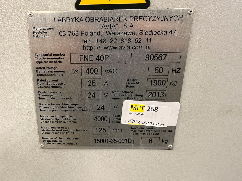 AVIA FNE 40 P Universal-Werkzeugfräsmaschine