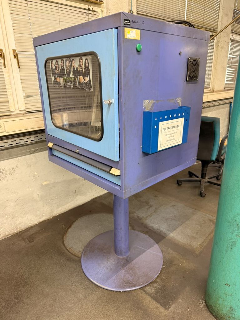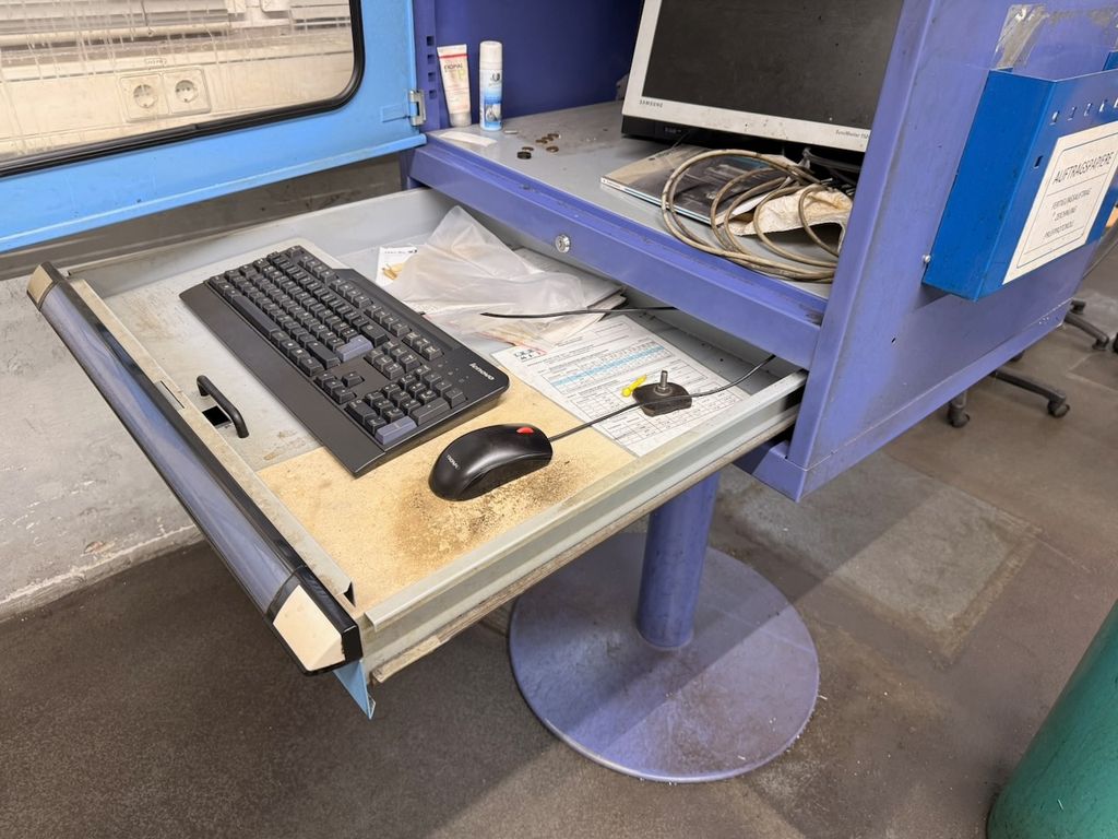 ndustrie-Bedienterminal in Stahlausführung, freistehend auf Säule montiert. Ausgestattet mit abschließbarer Fronttür mit Sichtfenster sowie ausziehbarer Tastatur- und Mausablage.