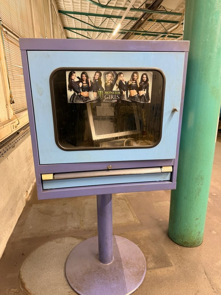 Im Inneren befinden sich Monitor, PC-Hardware sowie Anschluss- und Stromversorgungskomponenten