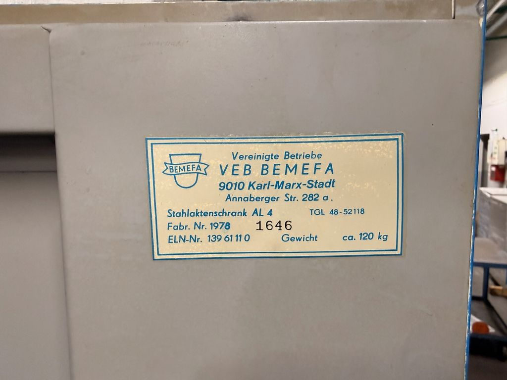 Gebrauchter Industrischrank aus Stahl, Hersteller VEB BEMEFA (Karl-Marx-Stadt).