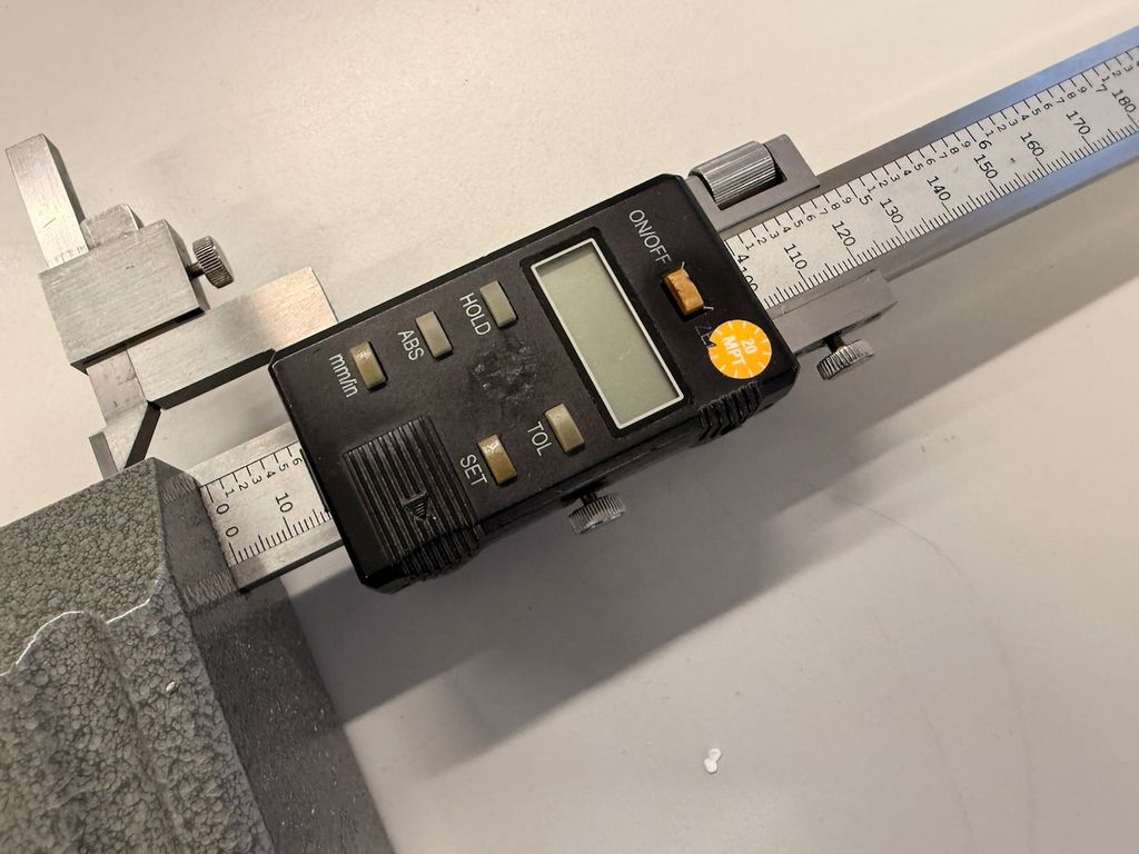 Präzises digitales Höhenmessgerät mit stabilem Messfuß für zuverlässige Höhen-, Tiefen- und Anreißmessungen auf der Messplatte.