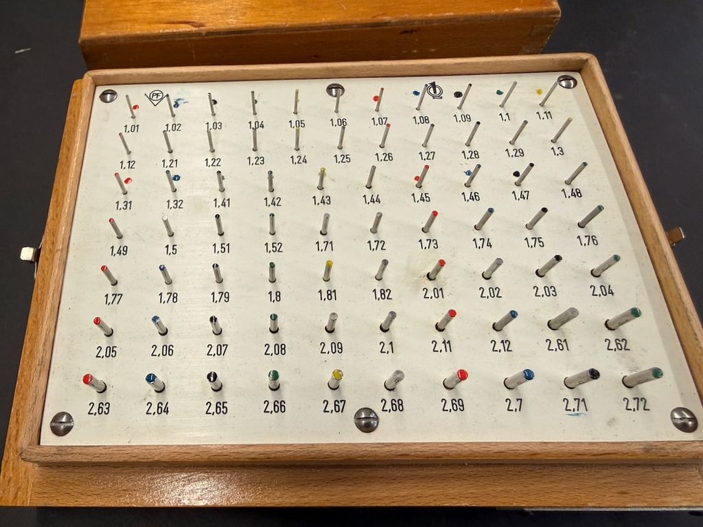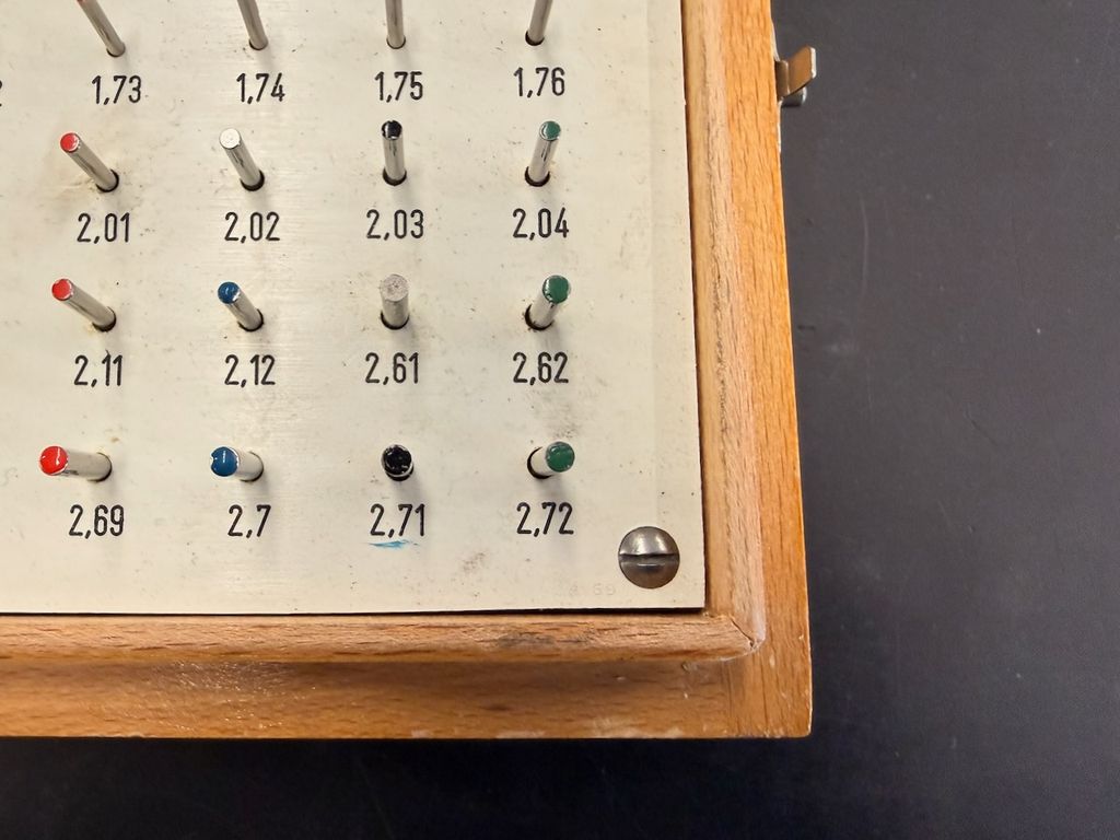 räzisions-Messstiftsatz im Bereich 1,01 mm bis 2,72 mm.