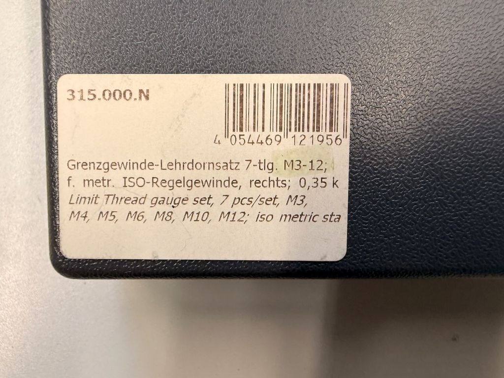 • Ein Satz Grenzgewinde-Lehrdornsatz 7-tlg. M3–M12 (ISO-Regelgewinde, rechts) im Koffer