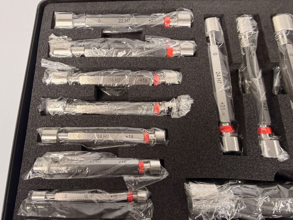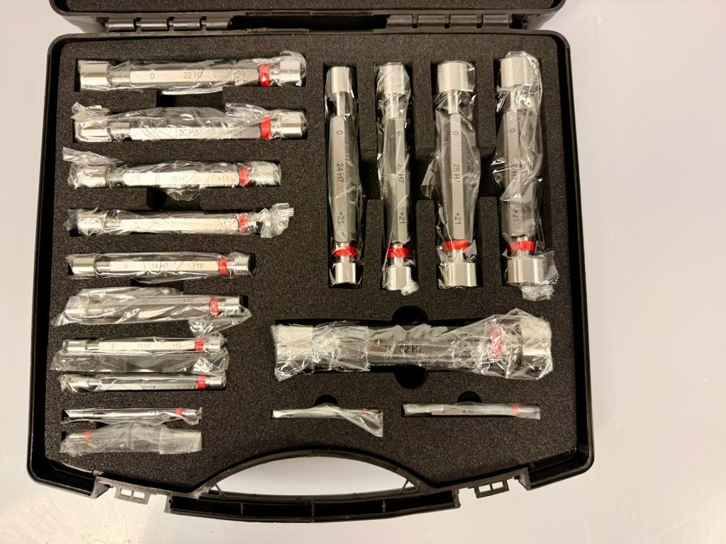 Grenzlehrdornsatz nach DIN 2245 / H7, bestehend aus 17 Grenzlehrdornen im Durchmesserbereich 3–32 mm.