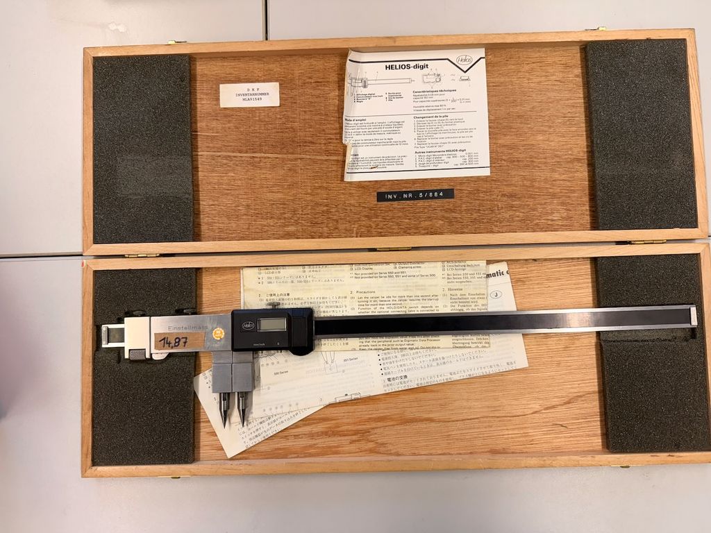 Digitaler Spitzenmessschieber (Innenmessgerät), Hersteller HELIOS, Ausführung HELIOS-digit, im Holzkasten inkl. Unterlagen.