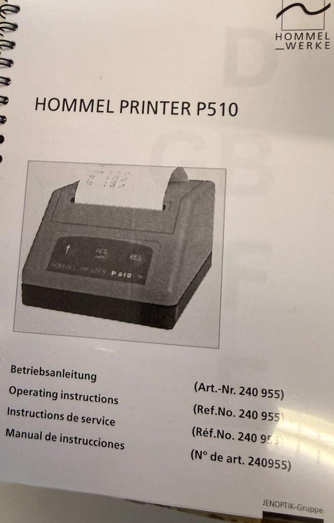 Hommel Printer P510 ist ein kompakter Messwertdrucker zur Protokollausgabe von Mess- und Prüfergebnissen, z. B. aus Rauheits- oder Formmessgeräten von Hommel. Thermodruckverfahren, robuste Industrieausführung für den Einsatz im Messraum oder in der Fertigung.