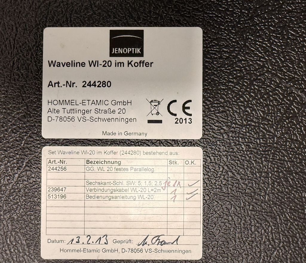 Stationärer Rauheitsmessplatz von Hommel-Etamic / Jenoptik aus Erstlieferung 2013 (siehe Lieferschein).