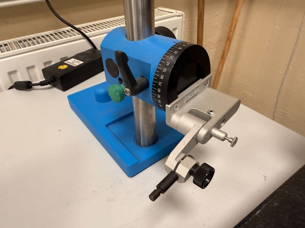 Der Messplatz besteht aus einer massiven Hartgesteinplatte mit Nut (Art.-Nr. 257056V01) als schwingungsarmer Basis sowie zwei HS 300 Höhenmessstativen.