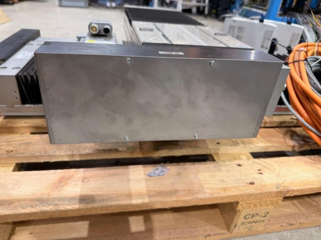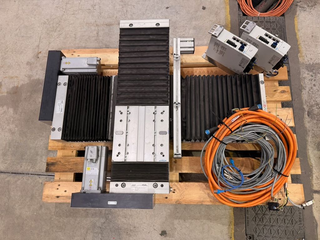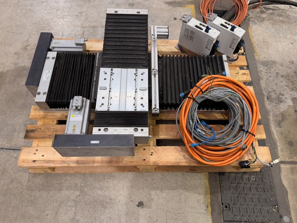 2-Achs-Linearportal (X/Y) aus einer demontierten Montageanlage, bestehend aus zwei Linearachsen, zwei Servoreglern und Kabelsatz.
