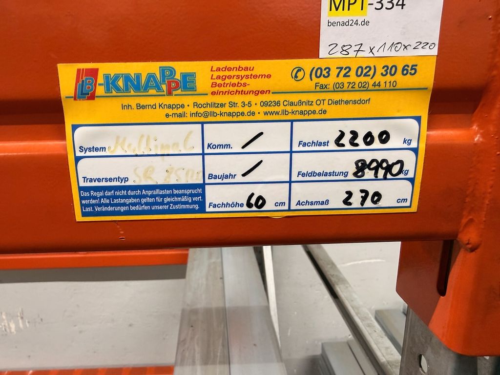 B‑KNAPPE Multipal Schwerlastregal Palettenregal mit Stahlauflagen 287x110x220 cm