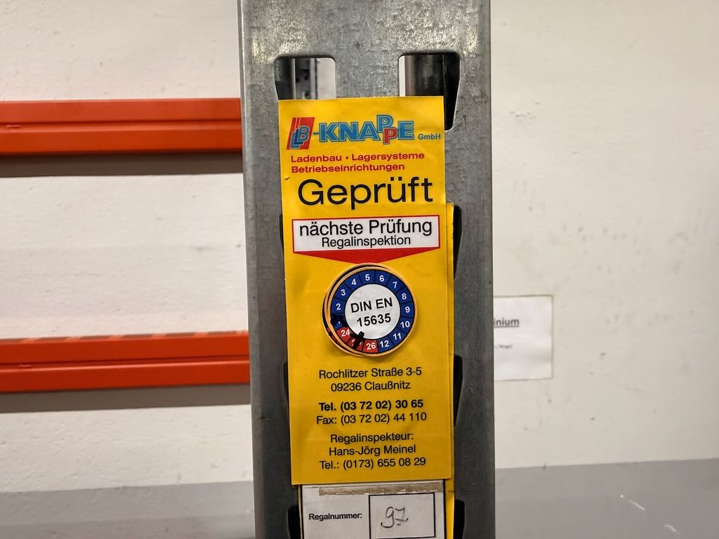 • Prüfplakette vorhanden (Regalinspektion durchgeführt)