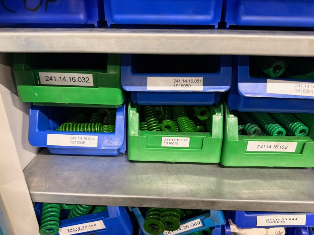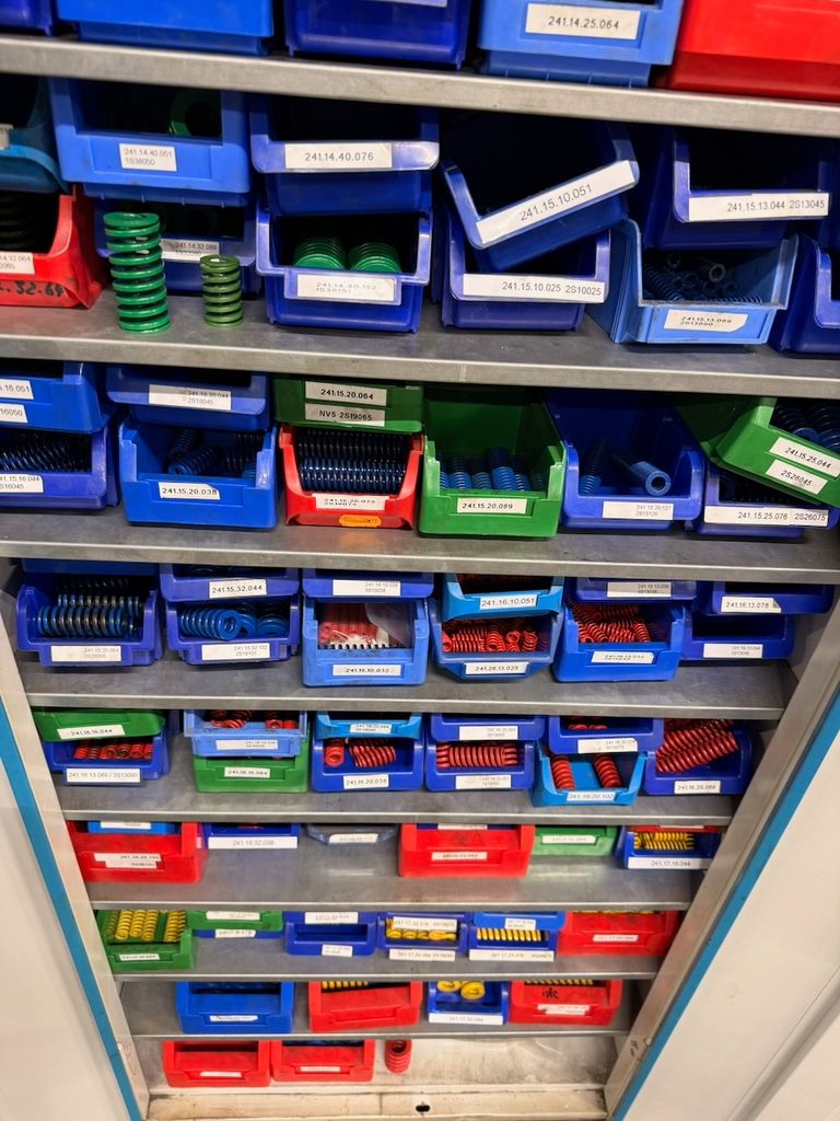 Sortierter Bestand an Druckfedern für Werkzeug- und Formenbau.
