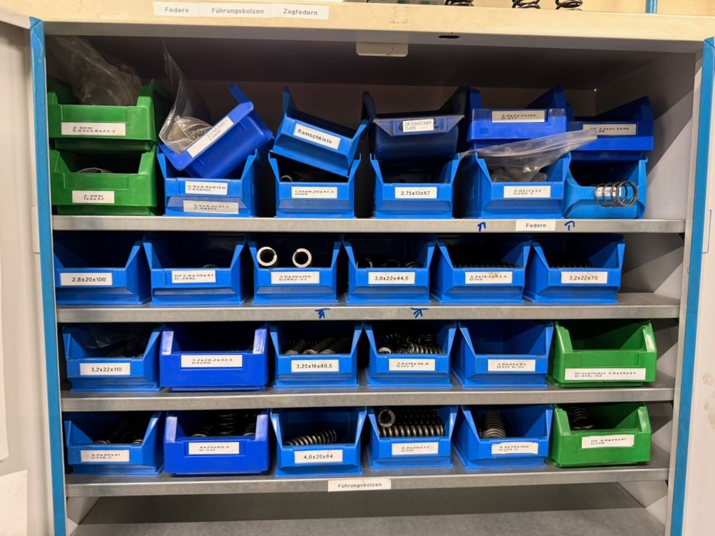• Inhalt der ca. 30 Lagersichtbehälter mit Druckfedern