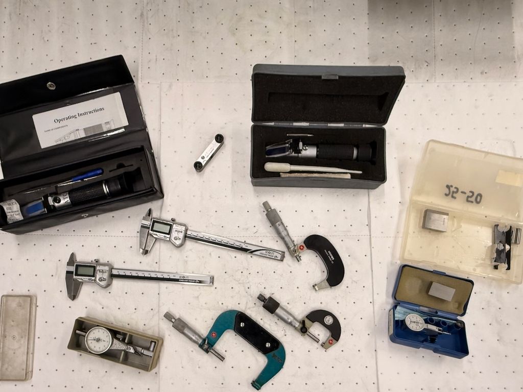 Konvolut Messmittel – Mitutoyo / Mahr / diverse – Schieblehren, Bügelmessschrauben, Messuhren, Refraktometer, Einstellmaß