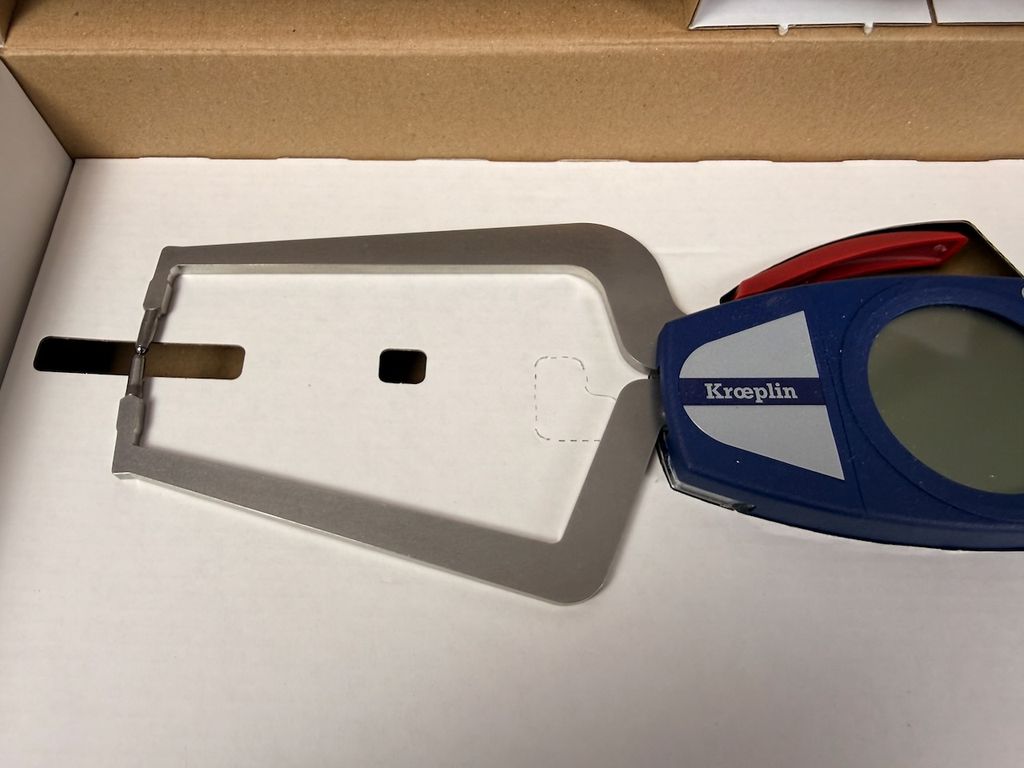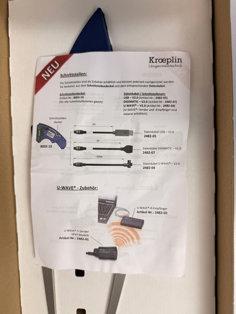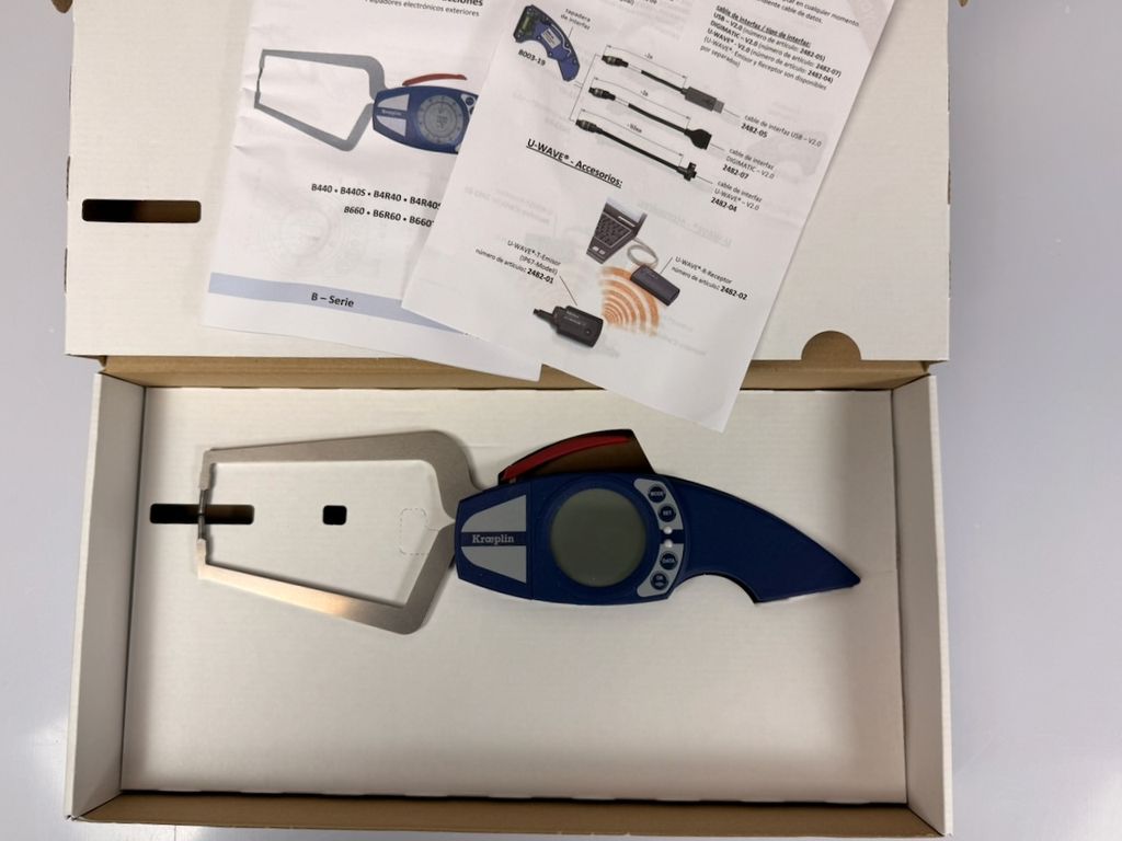 Digitale Messzange von Kroeplin Längenmesstechnik, Typ B440, geeignet für Innen-, Außen- und Stufenmessungen. Das Messgerät wird im Originalkarton inklusive Unterlagen geliefert.