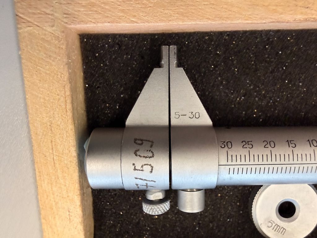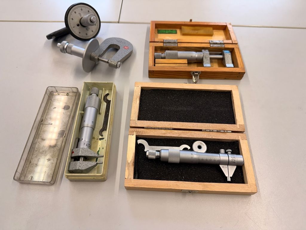 Messschrauben- und Messmittel-Konvolut – 5-teilig – mechanisch – Spezialausführungen – gebraucht