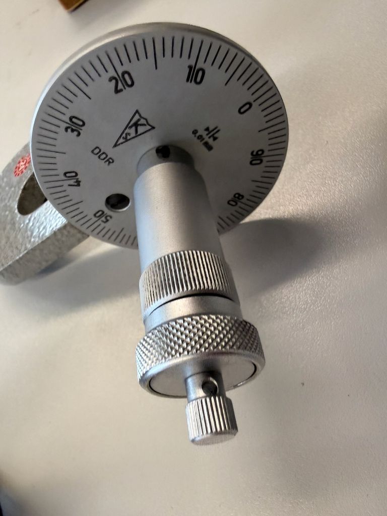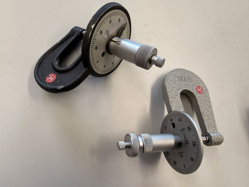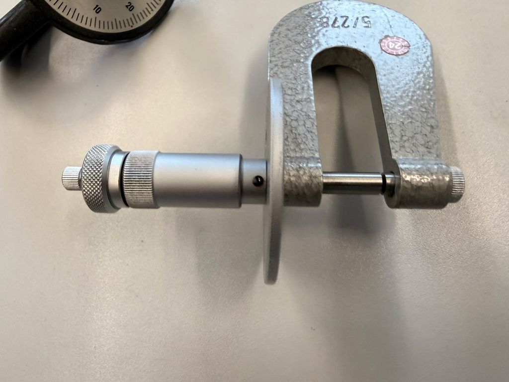 5-teiliges Konvolut mechanischer Messmittel, bestehend aus Bügelmessschrauben und Sonder-/Spezialmessschrauben (u. a. mit großer Rundskala).