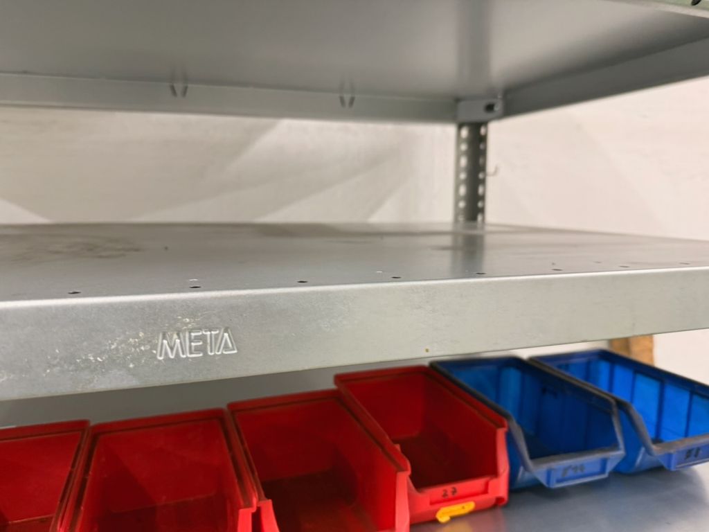 Gebrauchte META Stahlregale in stabiler Industrieausführung.