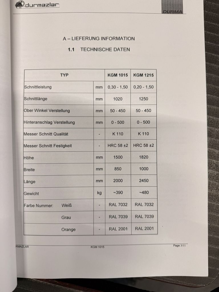• Arbeitsbreite / Schnittlänge: 1.020 mm