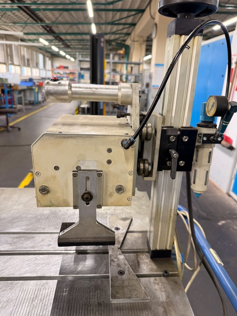 Stationäre Nadelmarkiermaschine zur dauerhaften Kennzeichnung von Metallteilen. Tischausführung mit integrierter Steuerung. Die Markierung erfolgt pneumatisch über Nadelhub. Geeignet für Serien- und Einzelteilkennzeichnung. Manuelle Positionierung des Werkstücks auf dem Arbeitstisch.