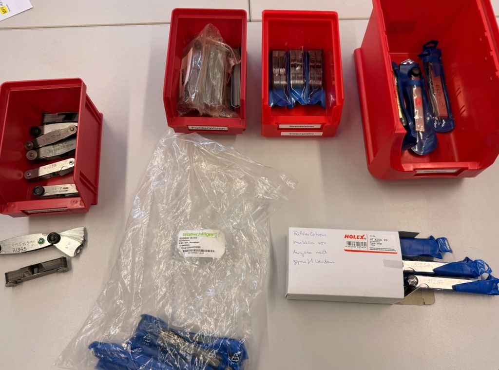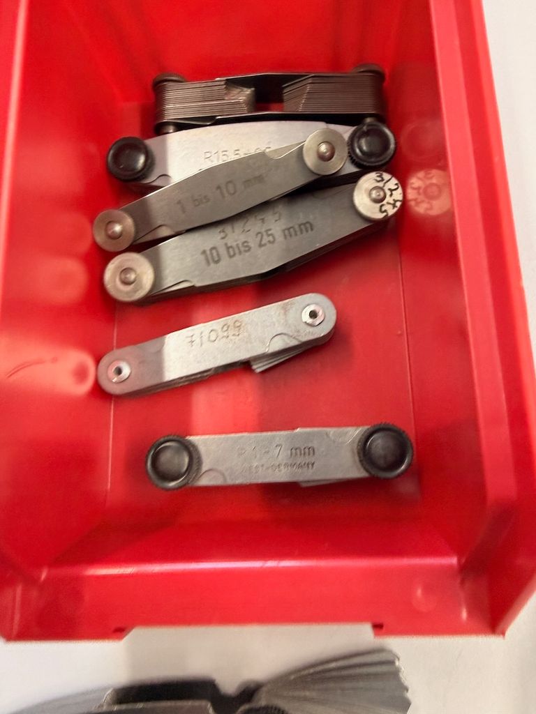 Gemischter Messmittel-Posten bestehend aus verschiedenen Lehren, überwiegend Fühlerlehren, Radienlehren, Gewindelehren sowie weiteren Prüf- und Messlehren.