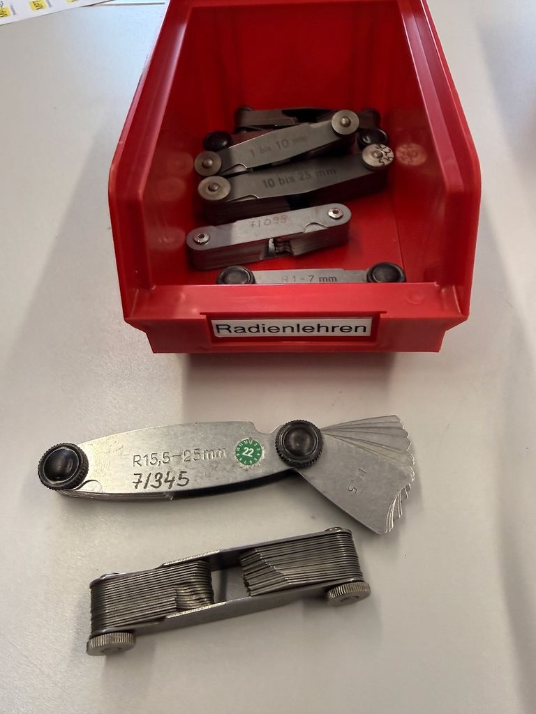 • Radienlehren (z. B. Bereiche 1–7 mm, 10–25 mm, 15,5–25 mm)