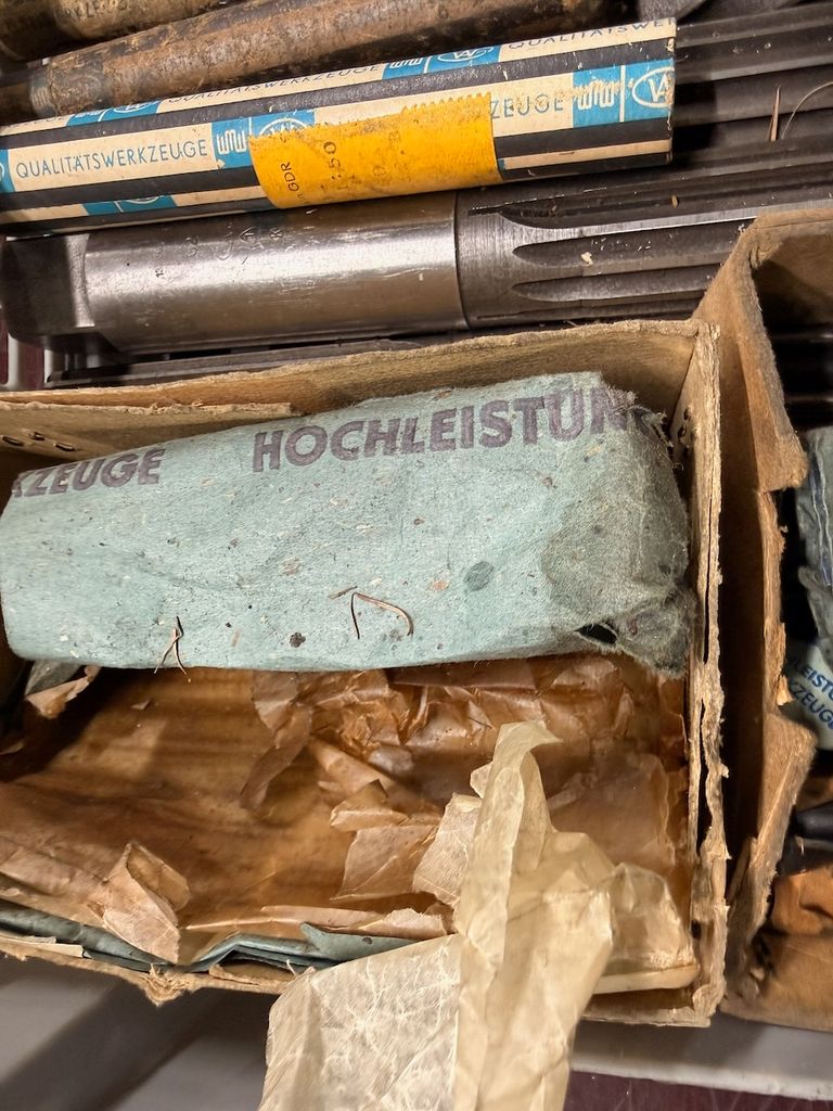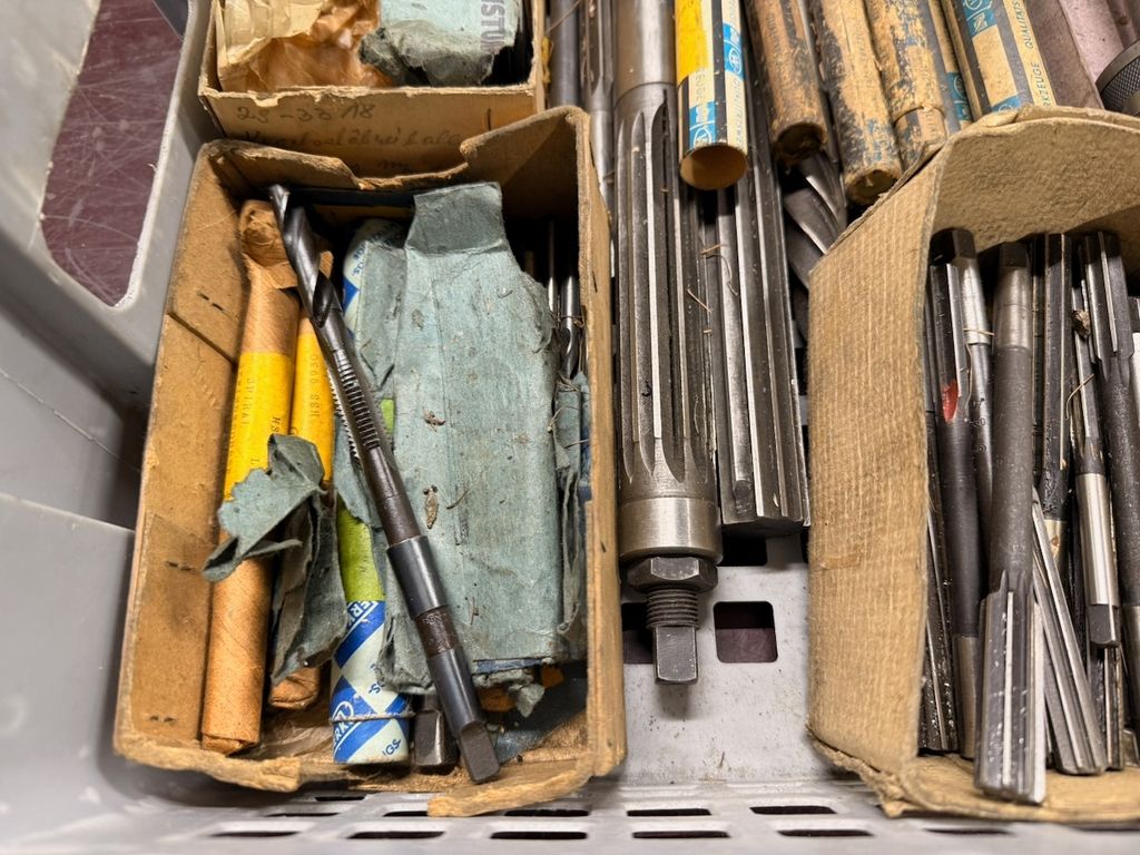 Der Posten besteht überwiegend aus älteren Industrie-Zerspanungswerkzeugen (u. a. Gewindebohrer, Reibahlen, Schaftwerkzeuge).