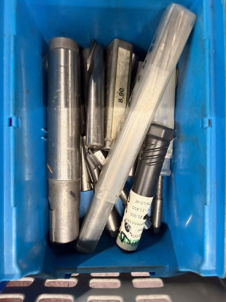 Der Posten umfasst eine Mischung aus kleineren und mittleren Schaftfräsern, Sonderfräsern sowie weiteren zylindrischen Werkzeugen.