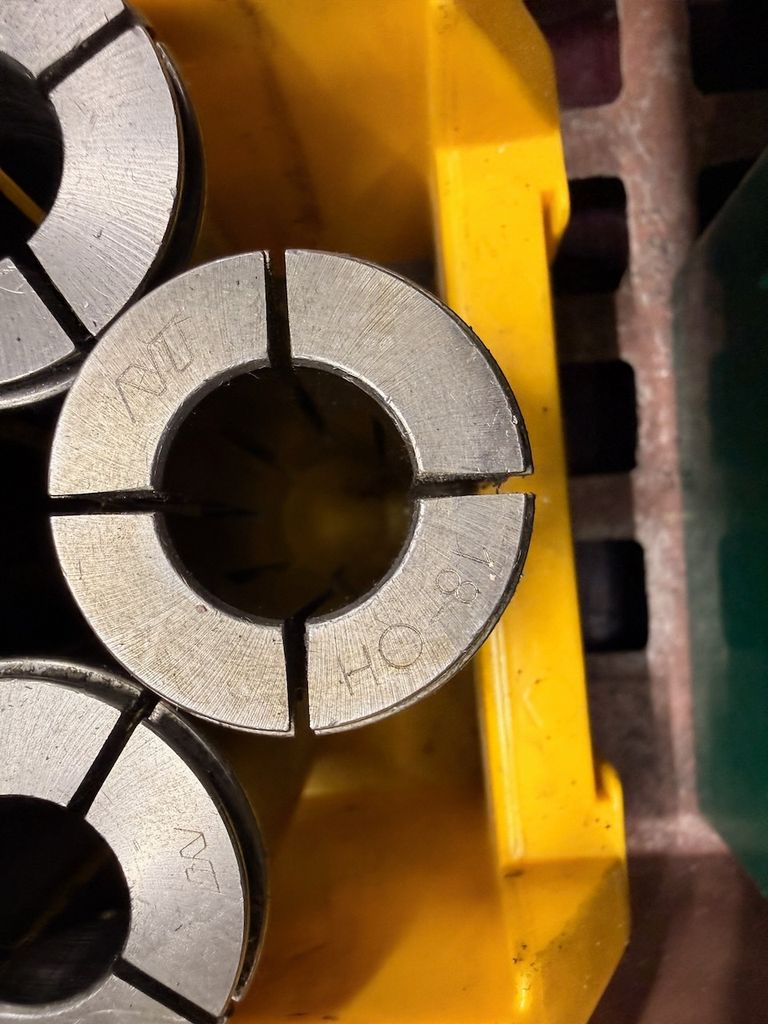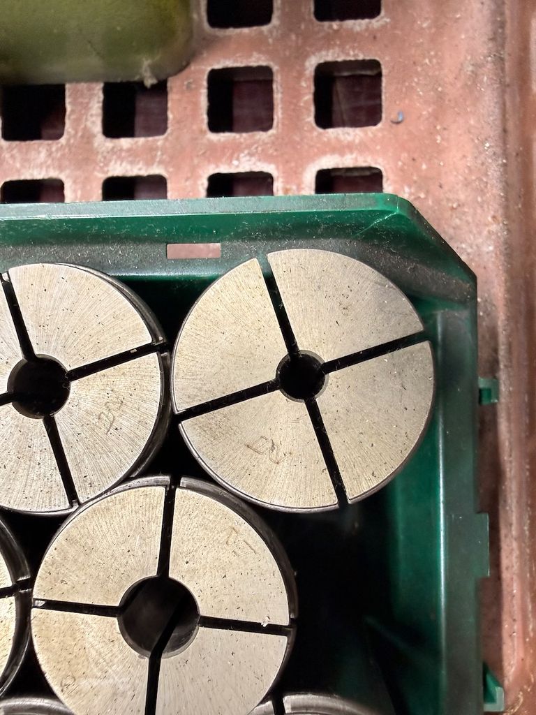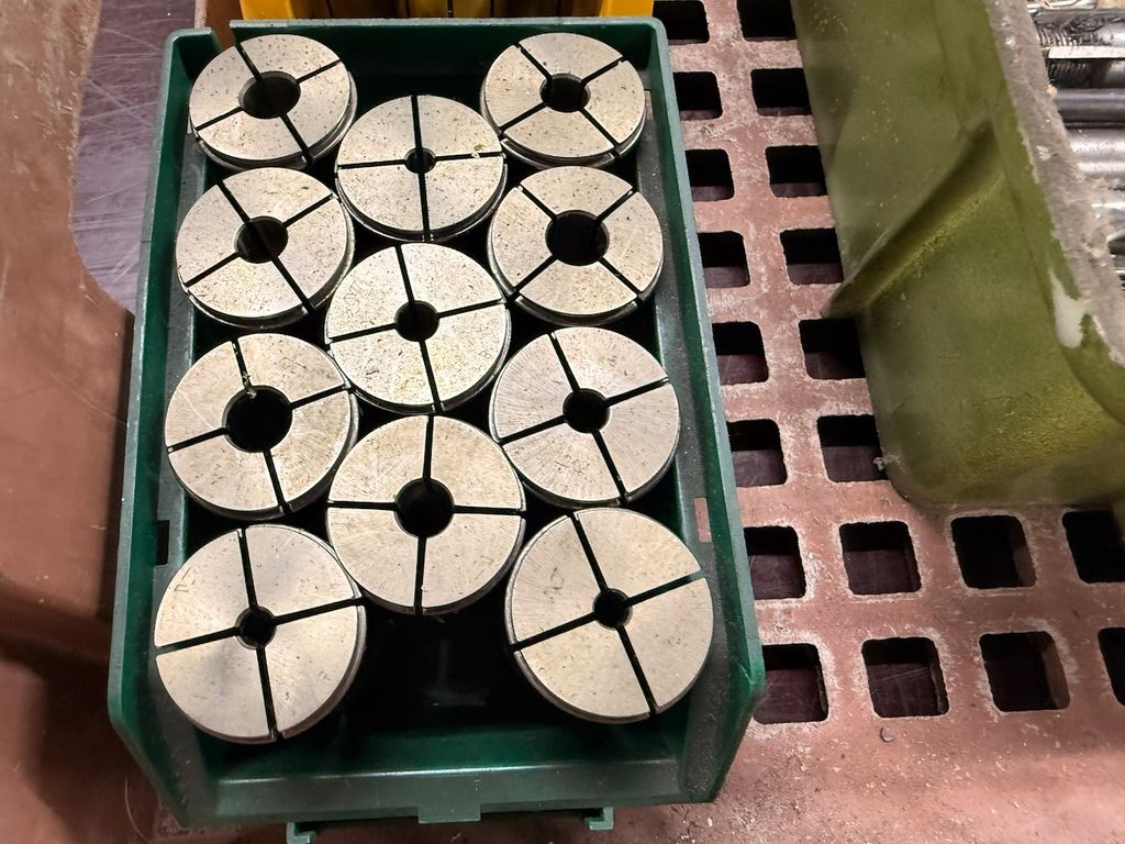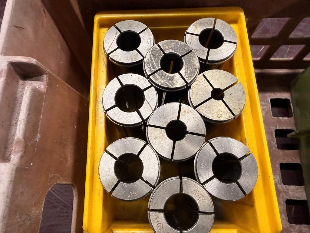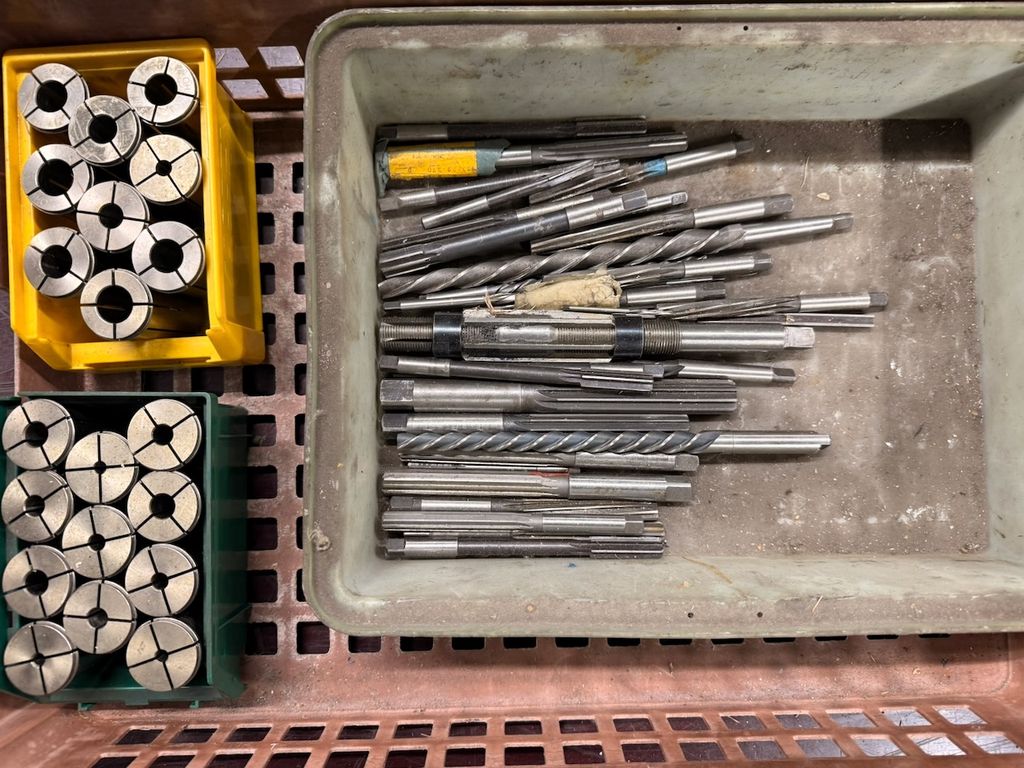 Der Posten besteht aus mehreren Spannzangen (in Kunststoffboxen) sowie einem gemischten Bestand an Werkzeugen wie Reibahlen, Bohrern und weiteren Schaftwerkzeugen in unterschiedlichen Abmessungen.