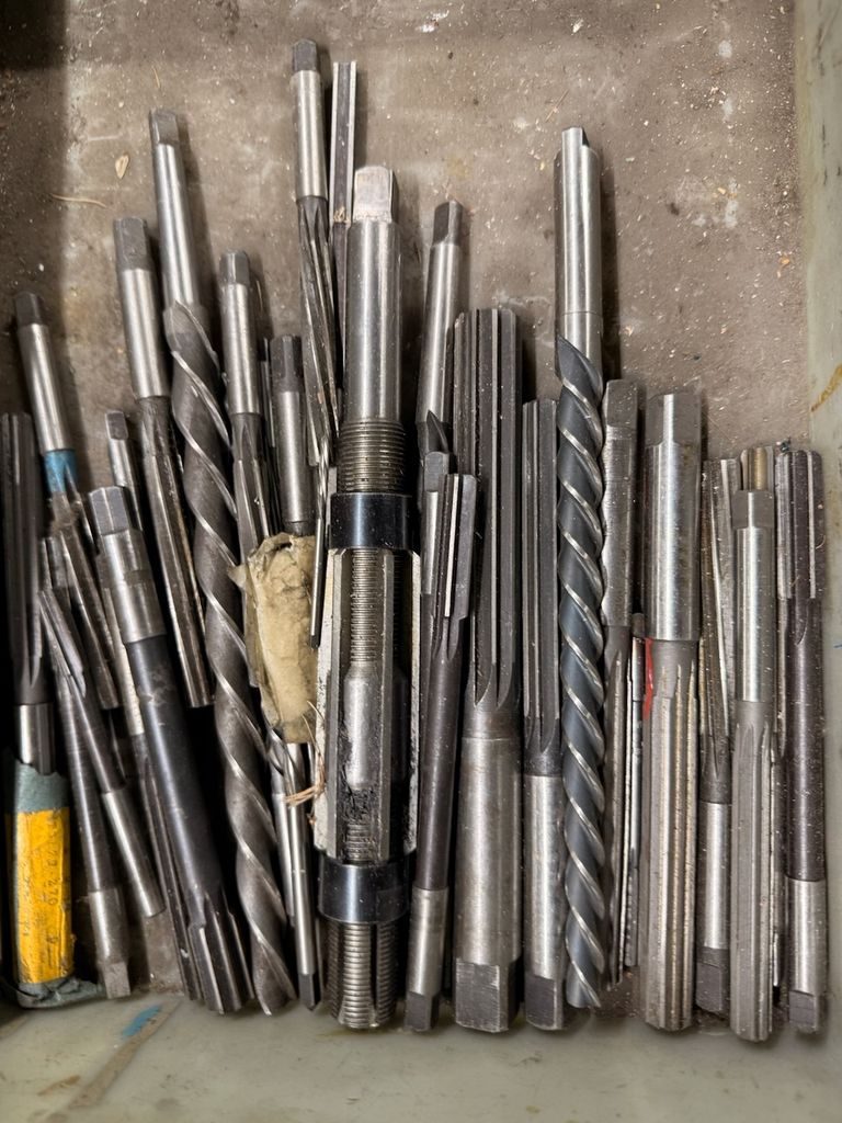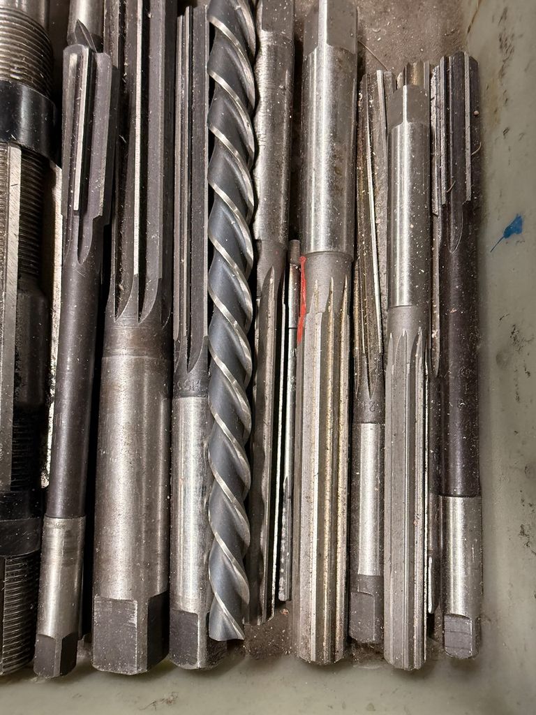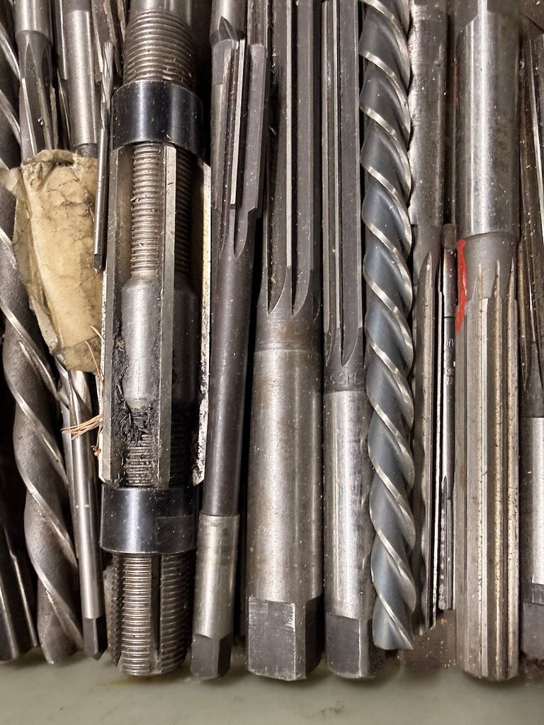 Konvolut aus Spannzangen sowie diversen Werkzeugen (u. a. Reibahlen, Spiralbohrer, Schaftwerkzeuge).