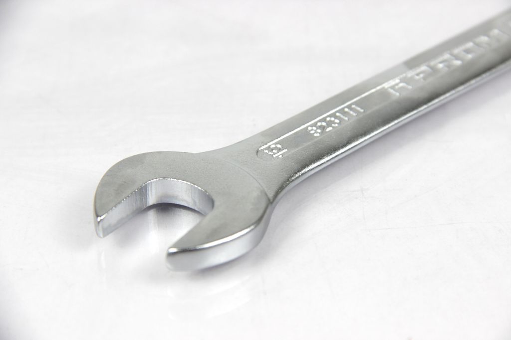 Gefertigt aus hochfestem Chrom-Vanadium-Stahl, ist der Schlüssel für hohe Belastungen und eine lange Lebensdauer im gewerblichen Einsatz konzipiert. Das Werkzeug ist nach DIN 3110 gefertigt, was eine exakte Passgenauigkeit und hohe Stabilität garantiert. Die verchromte Oberfläche bietet einen dauerhaften Schutz vor Korrosion, während die präzise gearbeiteten Köpfe ein sicheres Ansetzen am Werkstück ohne Abrutschen ermöglichen.