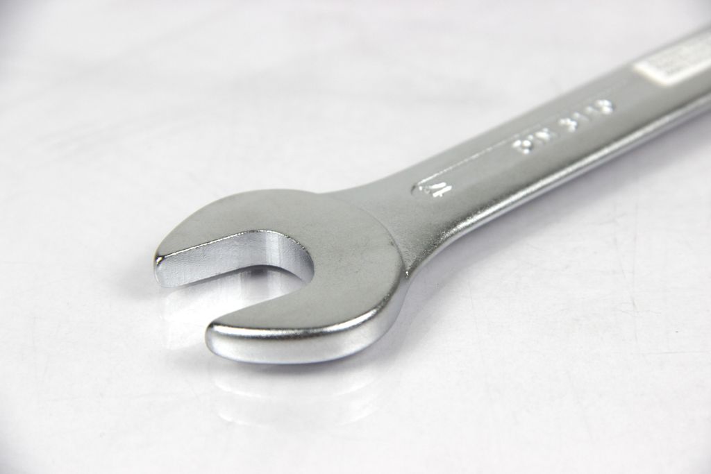 Gefertigt aus hochfestem Chrom-Vanadium-Stahl, ist der Schlüssel extrem belastbar und auf eine lange Lebensdauer im gewerblichen Einsatz ausgelegt. Das Werkzeug ist nach der strengen Norm DIN 3110 gefertigt, was höchste Passgenauigkeit und Stabilität garantiert. Die verchromte Oberfläche bietet einen dauerhaften Schutz vor Korrosion, während die fein geschliffenen Köpfe für ein sauberes Ansetzen an der Schraube sorgen.