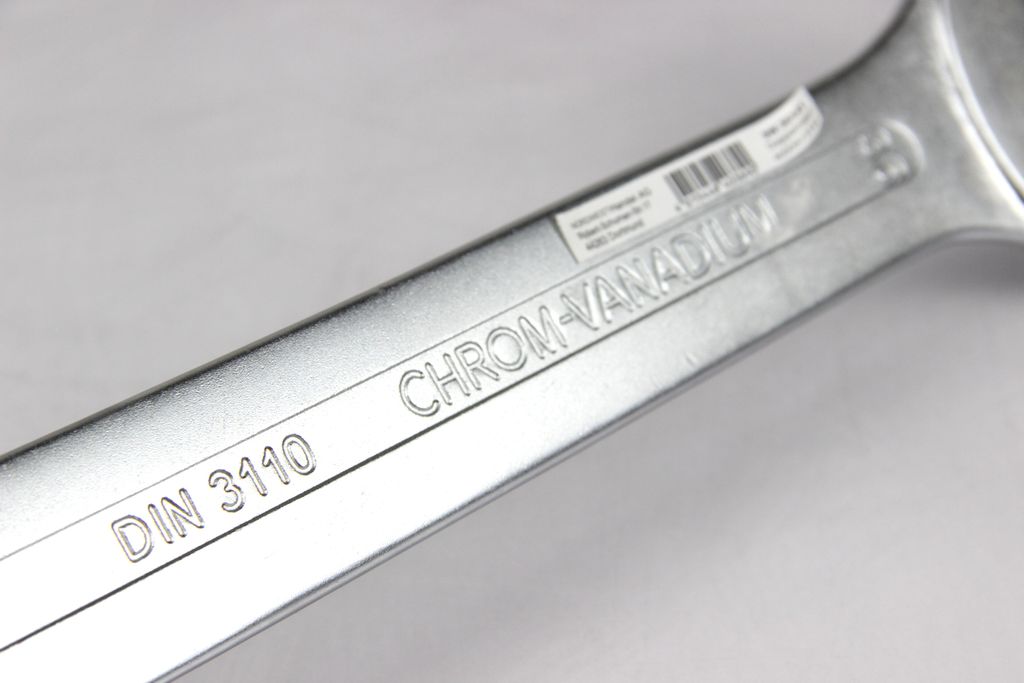 Gefertigt aus hochfestem Chrom-Vanadium-Stahl, ist dieser Schlüssel für extrem hohe Drehmomente und maximale Beanspruchung ausgelegt. Er erfüllt die Anforderungen der DIN 3110, was höchste Maßhaltigkeit und Sicherheit im professionellen Einsatz garantiert. Die verchromte Oberfläche schützt das Werkzeug zuverlässig vor Korrosion, während die präzise geschliffenen Köpfe einen formschlüssigen Sitz am Werkstück gewährleisten.