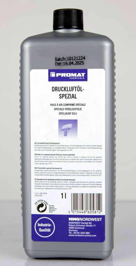 Promat Druckluftöl Spezial 1 Liter Spezialöl für Druckluftwerkzeuge Wartungsöl