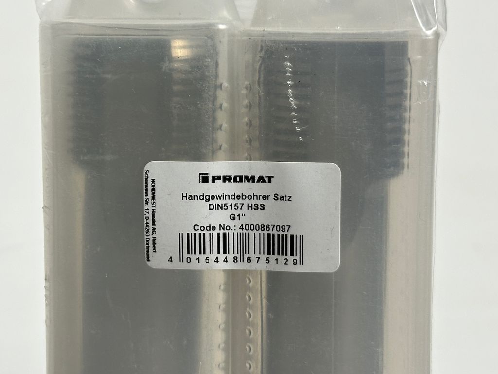 Der Promat Handgewindebohrersatz G 1″ ist ein professionelles Werkzeug für die Herstellung von Whitworth‑Rohrgewinden nach DIN ISO 228. Der Satz besteht aus zwei Gewindebohrern (Vor- und Fertigschneider) und ist aus HSS (High Speed Steel) gefertigt.