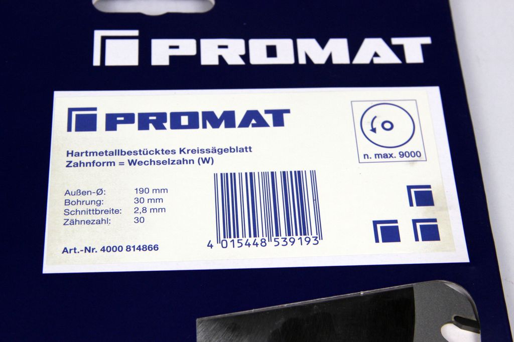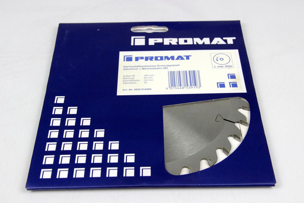 Promat HM-Kreissägeblatt Ø 190 x 30 mm Z=30 Wechselzahn (W) für Handkreissägen