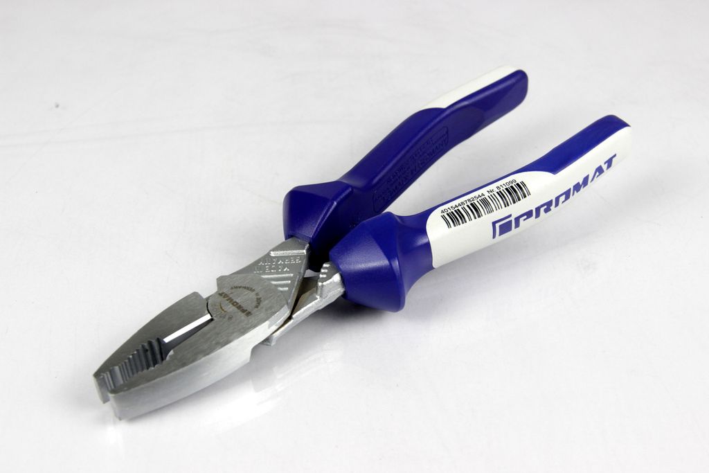 Diese professionelle Kraftkombizange von Promat ist ein Hochleistungswerkzeug für härteste Einsätze in Industrie und Handwerk. Durch die optimierte Hebelübersetzung bietet sie eine Kraftersparnis von bis zu 30 % gegenüber Standard-Kombizangen, was die Handgelenke und Muskeln bei dauerhafter Nutzung spürbar entlastet.