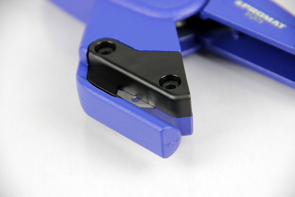 Sicherer Schnitt: Die Klinge ist so positioniert, dass das Rohr sicher fixiert und rechtwinklig getrennt wird.