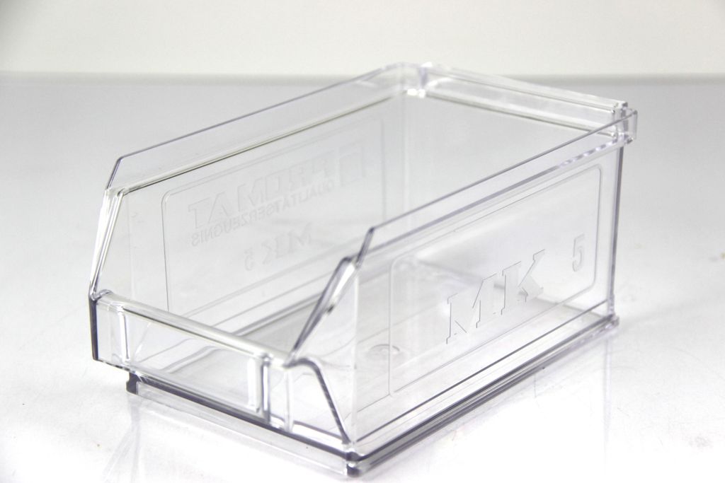 Dank der glasklaren Optik behalten Sie auch bei einer großen Anzahl an Boxen immer den Überblick über Ihre Bestände, ohne jede Box einzeln öffnen zu müssen. Die Kästen sind aus schlagfestem Kunststoff gefertigt und für die tägliche Belastung im professionellen Umfeld ausgelegt. Sie sind sicher stapelbar und bieten durch die abgeschrägte Frontöffnung einen bequemen Zugriff auf den Inhalt.