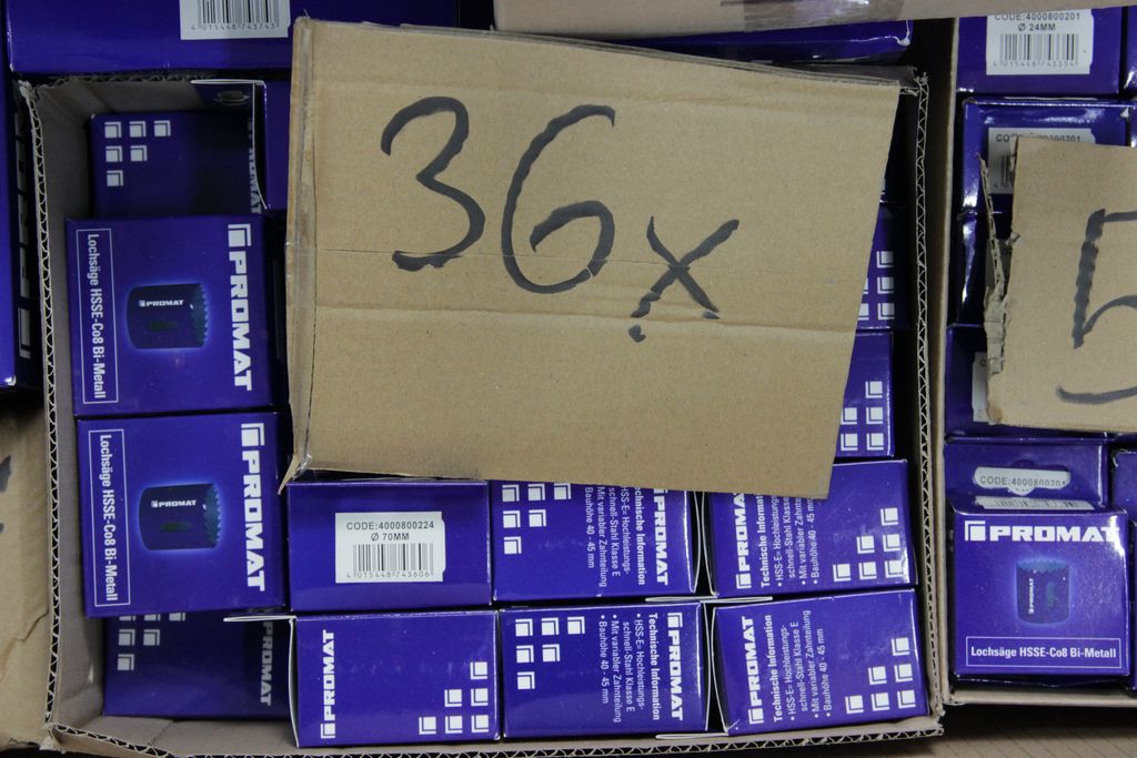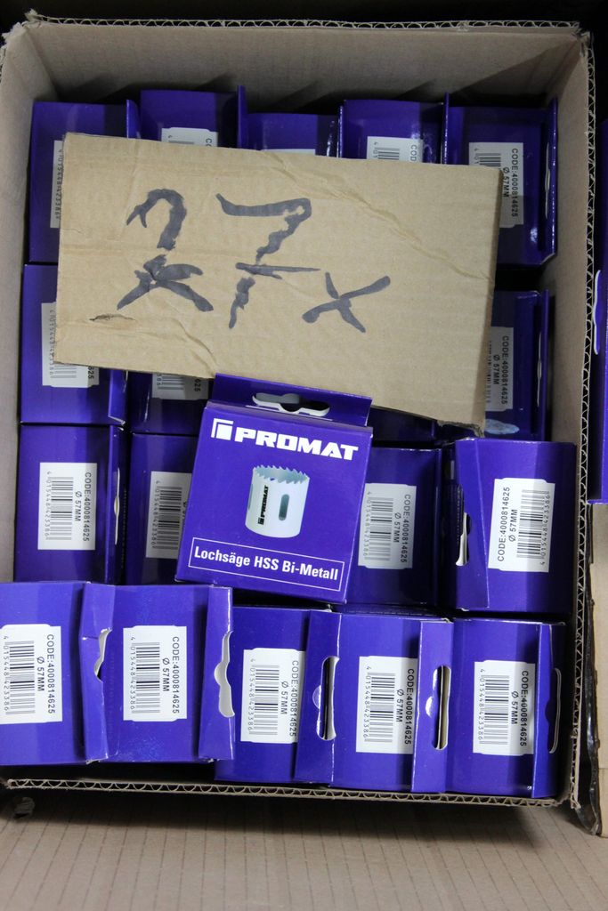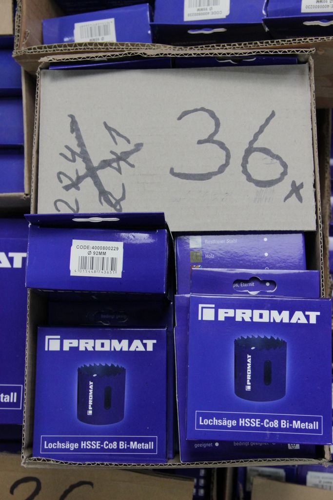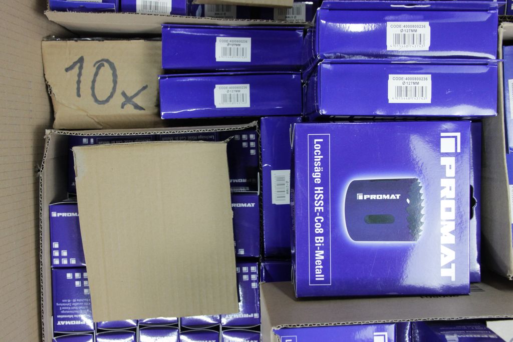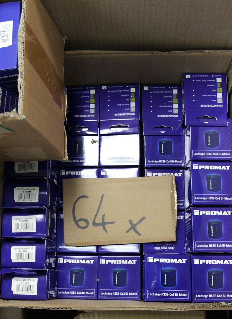 Zum Verkauf steht ein umfangreicher Lagerbestand an originalverpackten Lochsägen der Qualitätsmarke Promat. Diese HSS-Bi-Metall Lochsägen zeichnen sich durch eine variable Verzahnung aus, die für einen ruhigeren Schnitt, weniger Vibrationen und eine geringe Hitzeentwicklung sorgt. Ideal für Handwerk, Industrie und den anspruchsvollen Heimwerker.