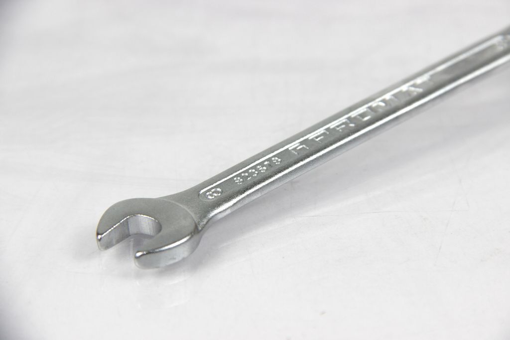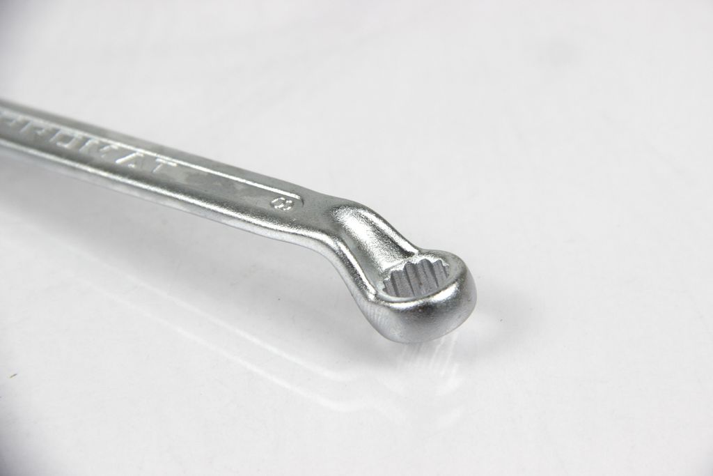 Das Werkzeug ist aus hochfestem Chrom-Vanadium-Stahl geschmiedet, was ihm trotz seiner geringen Größe eine enorme Belastbarkeit verleiht. Die Kombination aus einem präzise gearbeiteten Maul und einem 15° abgewinkelten Ringprofil ermöglicht ein effizientes Arbeiten, selbst unter beengten Platzverhältnissen. Die verchromte Oberfläche sorgt für einen professionellen Korrosionsschutz und eine lange Lebensdauer im täglichen Werkstatteinsatz.