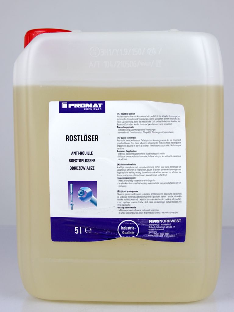 Der Promat Chemicals Rostlöser im 5‑Liter‑Kanister ist ein hochleistungsfähiger, extrem kriechfähiger Rostlöser für professionelle Anwendungen in Industrie, Werkstatt, Maschinenbau und Instandhaltung.